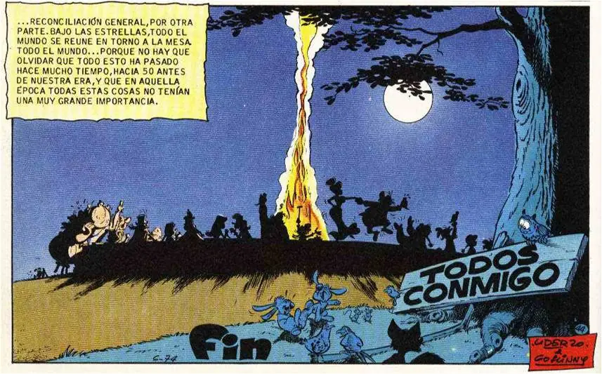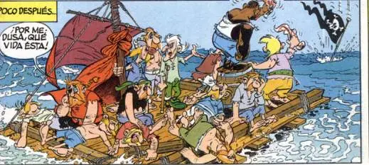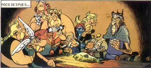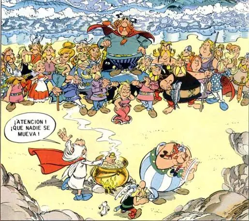 - La siguiente imagen es muy peculiar. Da la sensación de que Panorámix fuese a realizar una foto de todos los miembros de la aldea durante su estancia en la islita cercana a la aldea: