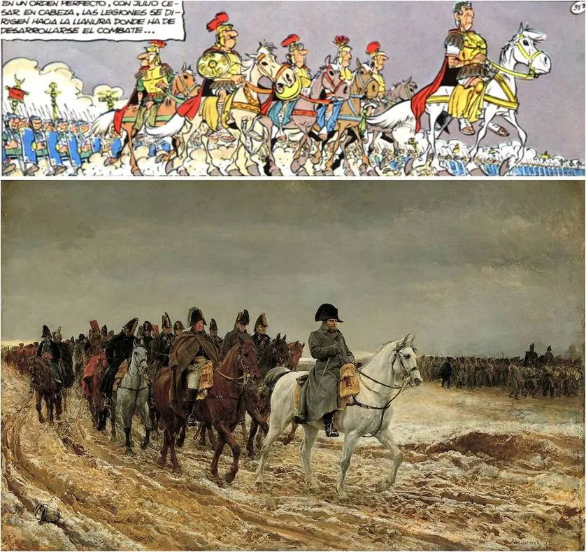 - Otra referencia napoleónica es la viñeta basada en la pintura 'Campaña de Francia, 1814' del pintor francés Jean-Louis-Ernest Meissonier.