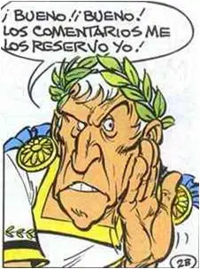 - César hace una referencia a su obra su obra 'Comentarios a la guerra de las Galias', fuente histórica de mayor importancia acerca de esta campaña y su obra más importante, cuando le dice a la reina Cleopatra que es él quien se reserva los comentarios sobre los galos.