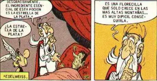 - Panorámix confiesa que para elaborar la poción mágica necesita una 'estrella de plata', nada más y nada menos que la conocida flor alpina 'Edelweiss'.