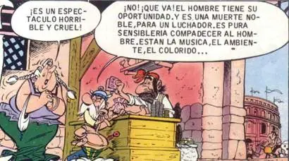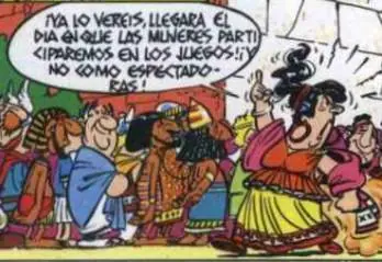 - Se hace una referencia a la represión machista en la época de las aventuras de Astérix. Un mundo en el que a las mujeres, entre otras cosas, se las privaba de participar en los juegos olímpicos.