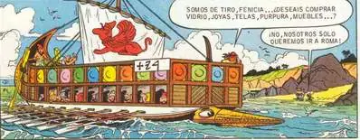 - Al sobrevolar la ciudad de Tiro, son atacados con flechas tal como sucediese en 'La Odisea de Astérix'.