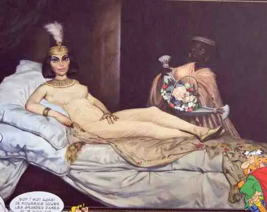- Olimpia: Se reproduce también el conocido cuadro de Edouard Manet en el que se reemplaza a Olimpia por la reina egipcia Cleopatra.