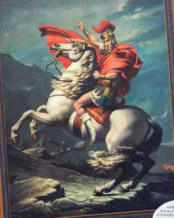 - Napoléon: Julio César aparece retratado en el conocido cuadro de Jaques Louis David reemplazando al mismísimo Napoléon.