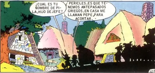 - Pepe dice que su verdadero nombre es Pericles ya que sus orígenes son griegos. Los autores podrían hacer aquí referencia al contacto que los íberos tuvieron con muchas culturas mediterráneas como los fenicios (de origen griego) especialmente en determinadas ciudades del sur como Cádiz (entonces Gadir).