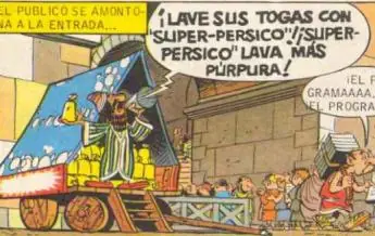 - Junto al Coliseo aparece un hombre vendiendo un producto para lavar que recuerda al célebre 'Persil'. El vendedor tiene pinta de persa dado el nombre del detergente: