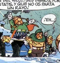 - Abraracúrcix dice que lo único que temen es que les parta un rayo (contrasta con la célebre expresión de que sólo temen que el cielo se les caiga encima). También se repite la frase en 'Astérix y Cleopatra' (imagen).