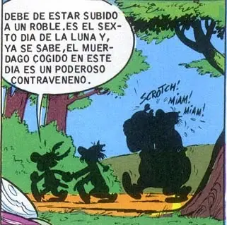 - Panorámix comenta que para elaborar la poción mágica, es imprescindible cortar el muérdago utilizando una hoz de oro.