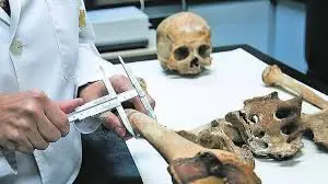 26. La descomposición continuará hasta que no quede nada excepto los restos óseos, lo cual puede tardar apenas un mes en climas cálidos y dos meses en climas fríos. Los dientes son a menudo lo único que queda años o siglos después, ya que el esmalte dental es la sustancia corporal más dura que existe. La mandíbula es así mismo la más densa, por lo que generalmente también perdura por mucho tiempo.