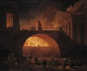 Ha sido el incendio más grande que ha visto la capital romana y sucedió en la época del imperio romano se dice que existe evidencia de que Nerón el emperador romano tocaba la lira mientras la ciudad entera ardía en llamas. Algunos rumores indican que fue el mismo Nerón quien con una antorcha incendio roma para limpiar los inmuebles de la ciudad para sobre las cenizas de estos levantar su nuevo imperio.