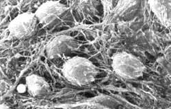 Figura I.8. Imagen de microscopía electrónica en la que se observan los cuerpos de las neuronas, los axones y los botones sinápticos.