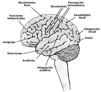 Figura I.3. Áreas en la corteza cerebral donde se localizan las neuronas relacionadas con distintas funciones.