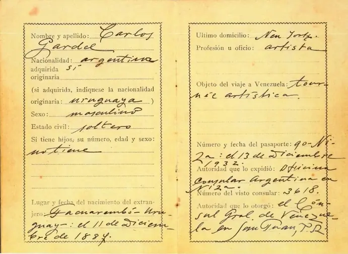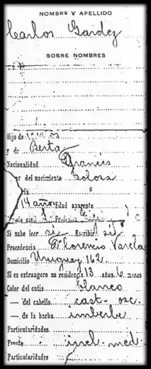 1) Casi por cumplir 30 años y próximo a viajar a Europa , Gardel decide documentarse en el consulado uruguayo de Buenos Aires como nacido en Tacuarembó, el 11 de diciembre de 1887.