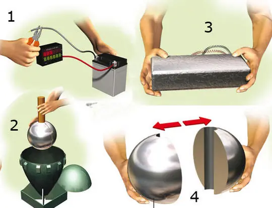 4.Separa las dos partes de la esfera de uranio enriquecido.