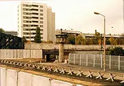 El Muro de Berlín fue completado durante la fortificación exhaustiva de las fronteras de la RFA y – en menor proporción – de otras fronteras occidentales de los países del Pacto de Varsovia, haciendo palpable el llamado Telón de acero. Como el resto de fronteras, el Muro de Berlín estaba provisto de un sistema muy completo de alambre de espino, fosos, barreras antitanque, recorridos para patrullas y torres de vigilancia. A principios de la década de 1980 se habían empleado cerca de mil perros policía. Este sistema fue extendido en las décadas siguientes. Particularmente, las casas cercanas al Muro se vaciaron después del amurallamiento. Este proceso continuó hasta el 28 de enero de 1985, día en el que se demolió la Iglesia de la Reconciliación en Bernauerstrasse. De esta forma se formó una franja alumbrada en la densa y oscura ciudad de Berlín.
