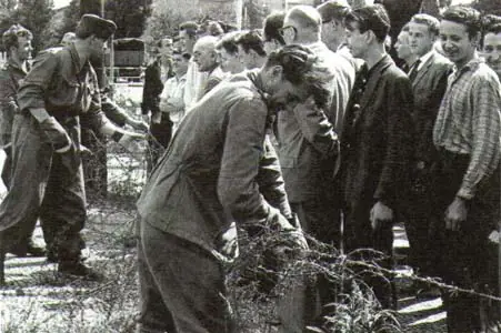 Desde el establecimiento de la RDA se incrementó la emigración en dirección a la RFA. Desde 1952, las fronteras interiores entre la RDA y la RFA se protegieron con vallas y vigilantes: se creó una zona de 5 km en la que sólo se podía entrar con un permiso especial -típicamente sólo para residentes. Cerca de la frontera había otros 500 m de zona prohibida y en la misma frontera una barrera de 10 m.-