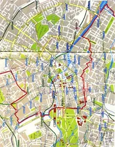Situación del Muro de Berlín trazada sobre una fotografía tomada desde un satélite