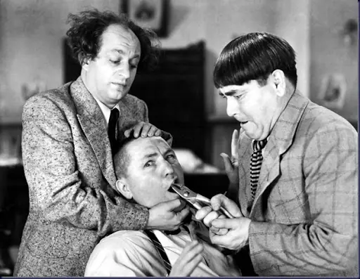 Pero hubo otra historia, es que siempre hay otra historia, que en este caso va más allá de las tartas en la cara, los retruécanos de Curly, las explosiones de Shemp, los golpes de Moe, o los arrebatos de Larry. La historia auténtica, esa que mostraba a un Shemp fóbico e hipocondríaco, o a un Curly: inseguro y depresivo, tanto que posiblemente dichos estados emocionales acelerarían sus respectivas y tempranas muertes. Por eso más que risa, a mi los chiflados me resultaron siempre patéticos y grises, aunque en lo suyo hayan sido genuinamente únicos…..!