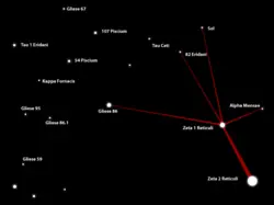 Mapa estelar de Zeta Reticuli, según Betty Hill y Marjorie Fish.