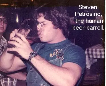 El 22 de Junio de 1977, en el Gingerbreadman Pub de New Cumberland, Pennsylvania, Steven Petrosino impuso un nuevo récord al beber un litro de cerveza en tan solo 1,3 segundos. Un tiempo imbatible, ya que la Asociación de Récords Guiness eliminó de su lista -acaso por prudencia o pudor- este tipo de pruebas, en 1991.