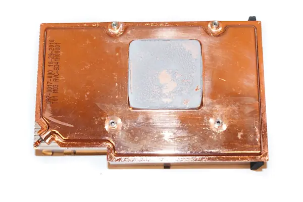En esta toma por el reverso, podemos ver en la esquina inferior izquierda la punta por donde fue cargado de gas el sistema de refrigeración. Base completamente de cobre y que viene acompañada de la ya clásica pasta de tipo seco, en adecuada cantidad.