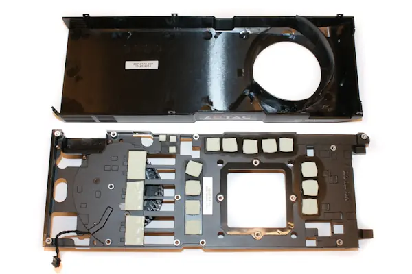 Ya desnuda la Zotac GTX 580 se ve sin duda hermosa, para los que somos más fanáticos, muy ordenada y robusta. Sin diferencias mayores al modelo de referencia.