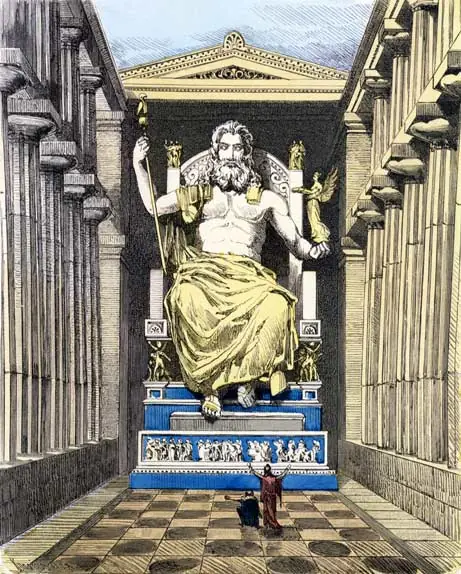 Esculpida hacia 430 a. C. por Fidias. Ubicada en el interior del templo dedicado al propio Zeus en Olimpia, Grecia, desapareció entre 393, año en que el emperador Teodosio el Grande prohibió el culto pagano, y 426, en que Teodosio II ordenó la demolición de los monumentos de Olimpia.