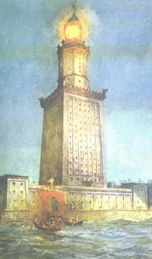 Construido entre 285 a. C. y 247 a. C. en la isla de Pharos, en Alejandría (Egipto), para guiar a los navíos que se dirigían al puerto de la ciudad. Al igual que la tumba de Mausolo dio nombre genérico a todos los grandes monumentos funerarios que la siguieron, la torre de Faros (Pharos) hizo lo propio con las torres de señales para la navegación. El Faro perduró hasta que los terremotos de 1303 y 1323 lo redujeron a escombros; en el año 1480, sus restos fueron reutilizados en la construcción de una fortaleza cercana.
