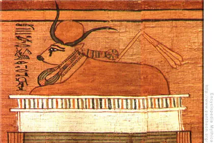 Buey sagrado. Relacionado con Path. Se cree que Ptah bajo la apariencia de fuego celeste, impregnó a una vaca virgen y de ella había concebido un toro negro que se convertiría en el portavoz o doble de Ptah. Se le representaba como un toro con marcas en la piel y el disco solar entre los cuernos o con cabeza de toro.