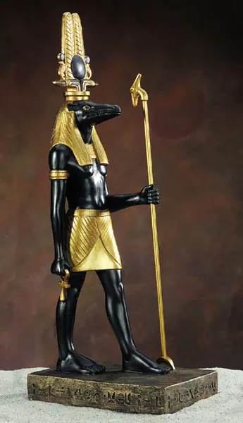 Dios que personificó la tierra desértica, la sequía. Simboliza las fuerzas destructoras, su voz era el trueno. Como no fué totalmente vencido, amenazaba periódicamente el orden cósmico. Era el asesino de Osiris. Representado como un extraño galgo con orejas largas cortadas, un hocico hacia arriba y un rabo bífido largo. Hijo de Guet y Nut.