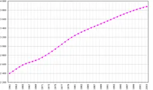 El PIB per cápita para 2005 era de 20.231 dólares] con un crecimiento de 2,7% de éste.