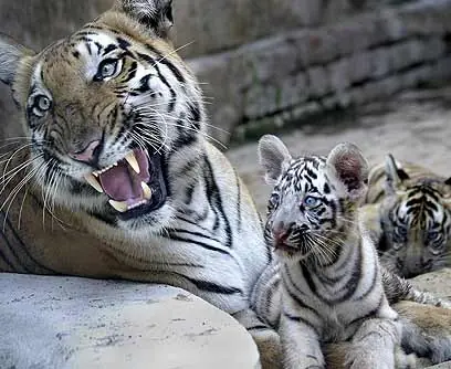 La tigresa llamada Krishna al cuidado de sus cachorros en el zoológico de Calcuta, India. Después de dos meses, las crías pudieron verse por primera vez.
