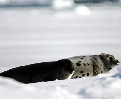 Una pareja de focas arpa en el Golfo de San Lorenzo,en Canadá.