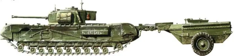 Este carro también fue otro de los inventos de Hobart y fue conocido por "Cocodrilo" Este tanque especializado es una variante del Churchill Mark VI al que se la había sustituido la ametralladora frontal por un lanzallamas. El lanzallamas podía alcanzar más de 100 metros de distancia utilizando un remolque que portaba un deposito de napalm. El remolque disponía de suficiente combustible para producir unas 80 ráfagas por segundo.