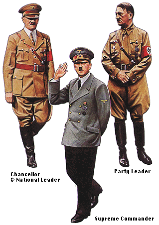 Llevó a la practica su ideario politico expuesto en su libro "Mi Lucha" (1924), arrastrando a Alemania y sus aliados del eje (Italia y Japon) a la guerra contra las potencias aliadas (1939-1945). Personaje enigmático. Se libró de varios atentados pero no de la influencias "magicas" que frecuentaron su entorno. El 30 de abril de 1945 presuntamente se suicidó en su bunker de Berlin junto a su mujer Eva Braun antes de caer en manos rusas.