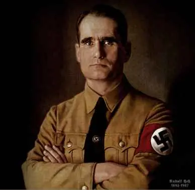 Alemán de origen egipcio. Incondicional apoyo de Hitler desde los inicios del partido nazi en 1919. Colaboró con el en la redaccion del libro "Mi Lucha". Lugarteniente personal de Hitler, parlamentario por el NSDAP en 1933, poco mas tarde jefe del Partido Nazi y segundo en el orden sucesorio del regimen hasta 1941 en que tras un enigmatico vuelo en solitario a Escocia en una mision de paz secreta cayó prisionero de los británicos. Juzgado en Nuremberg fue condenado a prision perpetua. Murio asesinado, segun se sospecha, en la prision de Spandau en 1987 a la edad de 93 años llevando su secreto a la tumba.