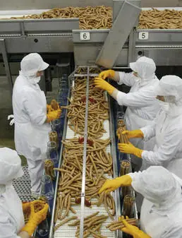 El porcentaje obedece a que a veces no es solocarne lo que se obtiene: también restos de otros tejidos (cerebro,médula, etc.). Por esta razón, en 1996 Reino Unido estableció un control muyexhaustivo de esta clase de productos.