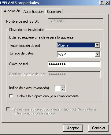 En las computadoras con placas de red inalámbrica, haga click en el icono de red inalambrica al lado del reloj del Windows. Aparecerá una lista de redes disponibles. Elija la red de su casa u oficina y, en el campo llave de la red, entre la llave de 13 caracteres que usted configuró en el router. Esta llave deberá ser repetida en ese campo Confirme la llave de la red abajo. Desmarque el chack Permitir autenticación IEEE 802.1x en esta red. Si usted configuró la llave de la red en otro campo diferente del 1 en el router, deberá hacer click en Avanzado y, en el campo índice de la llave, ingresar el número del campo de la llave (3 en el ejemplo que dimos). Haga click en Conectar. Si todo anda bien, la computadora se conectará inmediatamente a la red y a Internet (primero aparecerá que no hay red disponible y pocos segundos después el Windows informará que halló la red e informará el nivel de la señal).