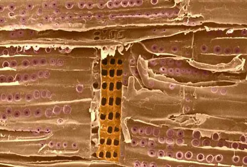 Como se puede observar en la figura 2a, la madera no es mas que un cúmulo de vasos comunicantes que forman las fibras. y su estructura puede verse afectada por su crecimiento.
