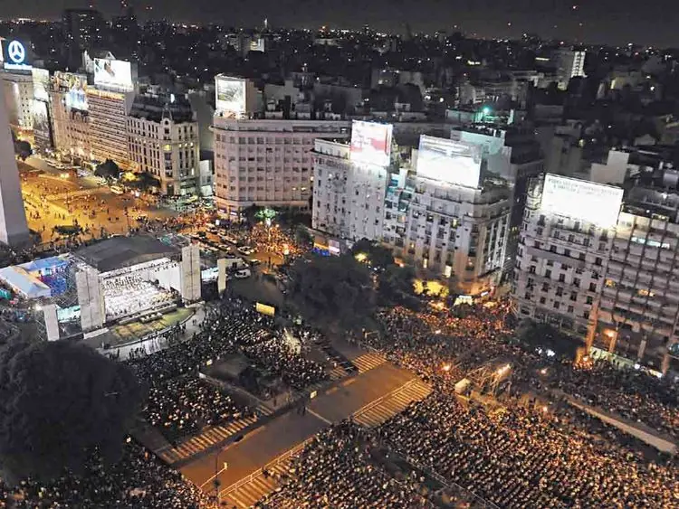 Los que estaban más lejos pudieron seguir todo a través de la pantalla gigante montada sobre el escenario, y otras a los costados, a lo largo de la 9 de Julio, donde había grandes torres de sonido.