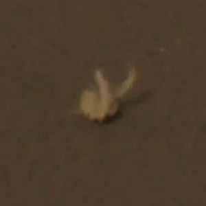Algunos comentaron que podría tratarse de algún trozo de plásticode la propia nave, del paracaidas, de las bolsas inflables en las querebotó al caer. Las elucubraciones continuan y mientras tanto paracomplicar más las cosas, desapareció y lo relocalizaron a una ciertadistancia de la nave en lo que le han dado en llamar el misterio deMeridiani, pues estaba a unos 4 o 5 metros de distancia.
