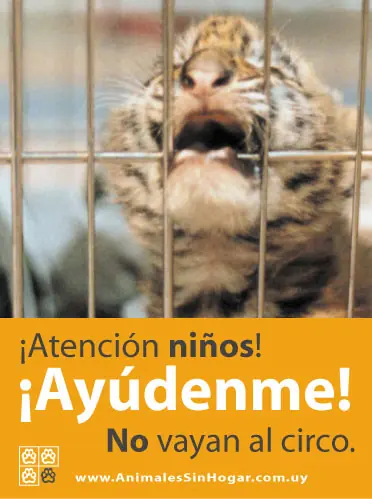 En cuanto a educación, los circos enseñan precisamente la peor actitud posible hacia los animales, despojando a unas magnificas criaturas de su dignidad a base de forzarlas a realizadas trucos estúpidos y dolorosos. (ALA Alternativa para la Liberación Animal)