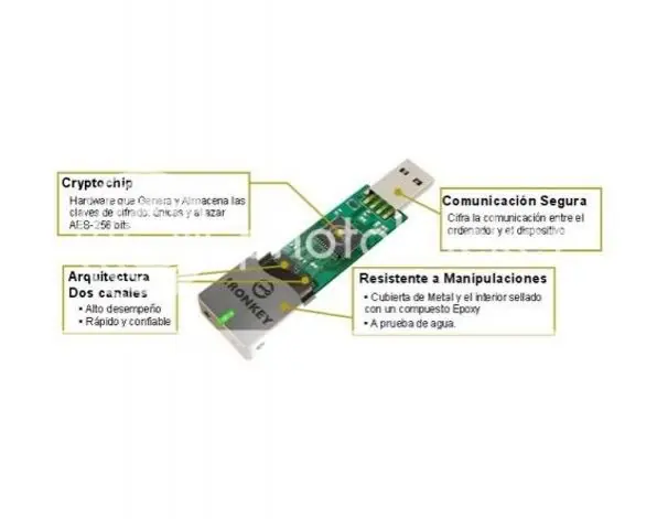 Se trata de un gadget que en apariencia no difiere mucho de otras memorias USB, sin embargo su interior es muy especial. Su tecnología de cifrado es por hardware, lo que ofrece una mejor seguridad en caso de amenaza que de ser por software.