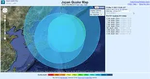 Aca les traigo esta pagina que va mostrando en sincronia todos los sismos que hubo desde el viernes viernes 11 de marzo de 2011 a las 14:46:23 con el terremoto de magnitud 9,0 hasta hoy. increible