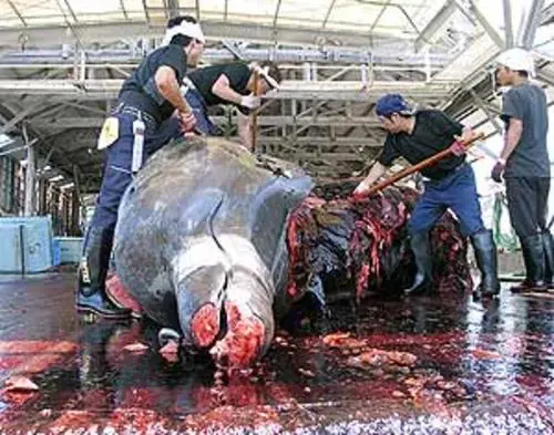 Japón continúa con la matanza de ballenas "con fines científicos", no obstante, la carne y los subproductos de estos cetáceos son comercializados en el mercado japonés, luego de extraerles las vísceras. En 1997 mataron 440 ejemplares y en 1998, 438 cetáceos.