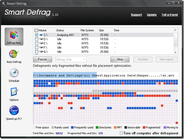 Con Smart Defrag puedes despreocuparte, puesto que una vez ejecutado, realiza una desfragmentación continua en segundo plano, mientras tú continuas con tus tareas habituales, sin necesidad de intervención del usuario.