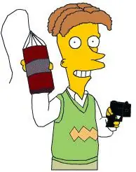 En el episodio llamado "El Gran Timo", Bart y Homero comienzan a timar a la gente de la ciudad, inicialmente con un set de magia casera. Bart se hace pasar por un niño ciego con un pastel, simula haber perdido a su perro, y hace que la gente le de más y más dinero. Un día el abuelo les da una idea para un timo; Bart y Homero se disfrazan de vendedores, y van al Asilo diciendo que Abraham Simpson había ganado diez millones de dólares. El Abuelo simula morir y ambos exclaman que ya no podrían entregar la gran suma de dinero, a menos que cada residente del Asilo aportase 100 dólares para comprar un nuevo cheque gigante. Los ancianos, creyendo en Homer, le dan 100 dólares cada uno pero son atrapados por un agente de policía.