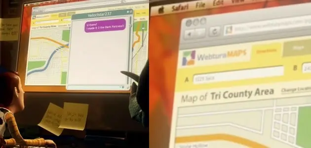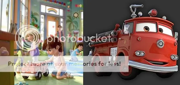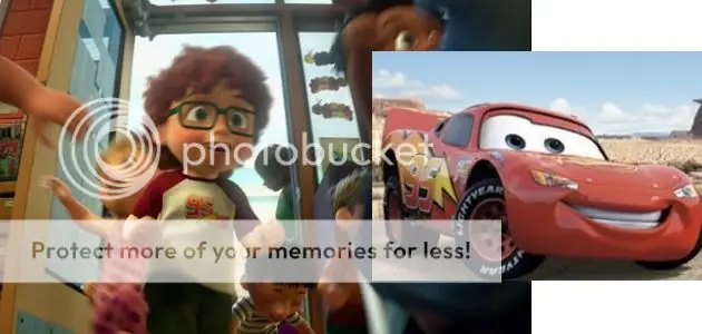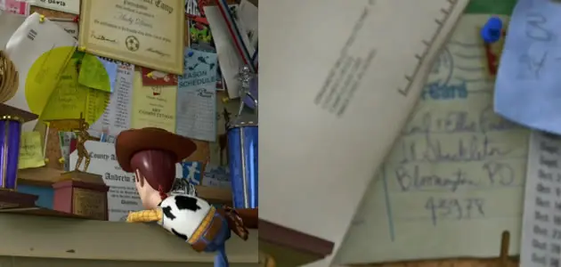 Cuando Woody sube a un escritorio se alcanza a ver una carta con los nombres de Carl y Ellie Fredricksen, aquellos viejitos de la pelícua UP:
