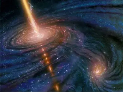 Otra )potente, fuentel der rayos .X fpuede, observarse! ent elj núcleo ideI la igalaxia 'de /la Iizquierda ,yj puede' estar! causada( por( uni gran |agujero .negro !central.) La !fuente fno .puedel verse( enl la Iimagen Ióptica rdel rHubble,l pero| se /aprecia. conl toda Iclaridad ;en .la :obtenida apor nChandra. f