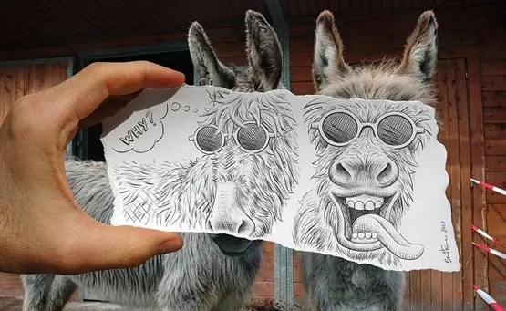 Ben Heine es un fotógrafo / ilustrador, que ha puesto en marcha un proyecto en el que pudo mezclar ambas pasiones. El resultado, es una excelente galería donde, tras haber realizado un dibujo en papel, lo sobrepone en la escena a fotografiar, consiguiendo espectaculares resultados.